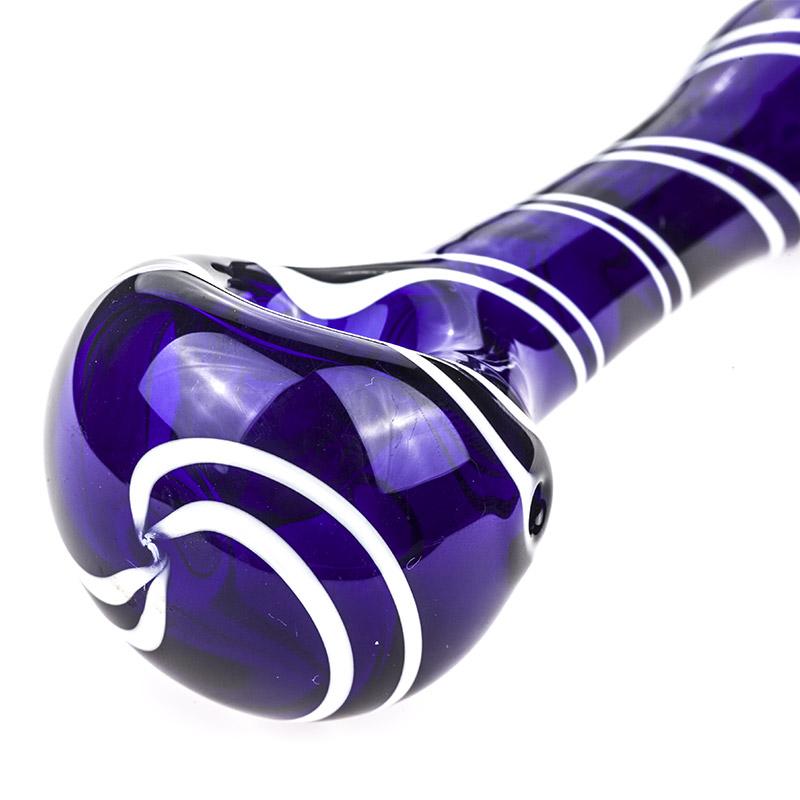 Glass Spoon Pipe with White Strip Patterns