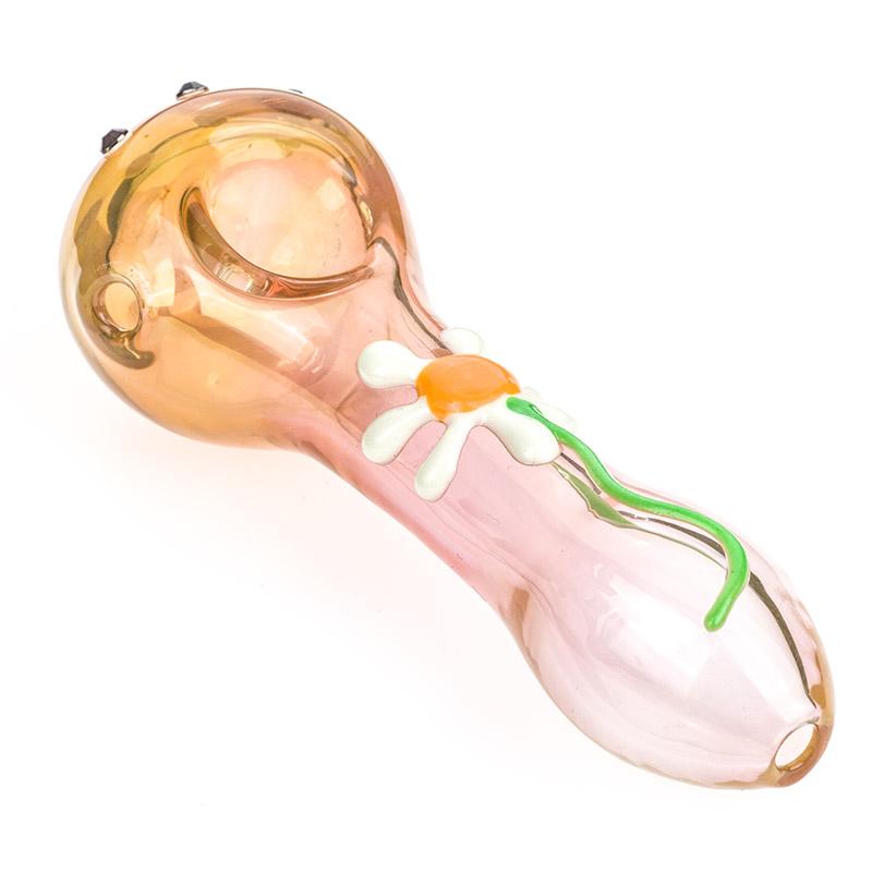 Pink Glass Pipe with Daisy Flower