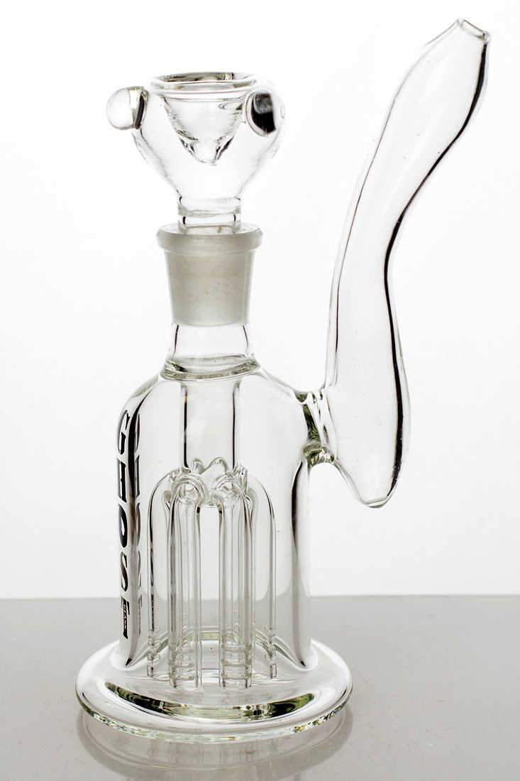Mini dab rig or nano dab rigs can sit on the palm of your hand, but you can still use ordinary size quartz bangers or titanium nails on them(14mm male or female), but the downside of using a mini dab rig is that they won't be able to contain as much water for chilling the vapor like a normal-sized dab rig. But they are still super fun to use and super lightweight to carry!