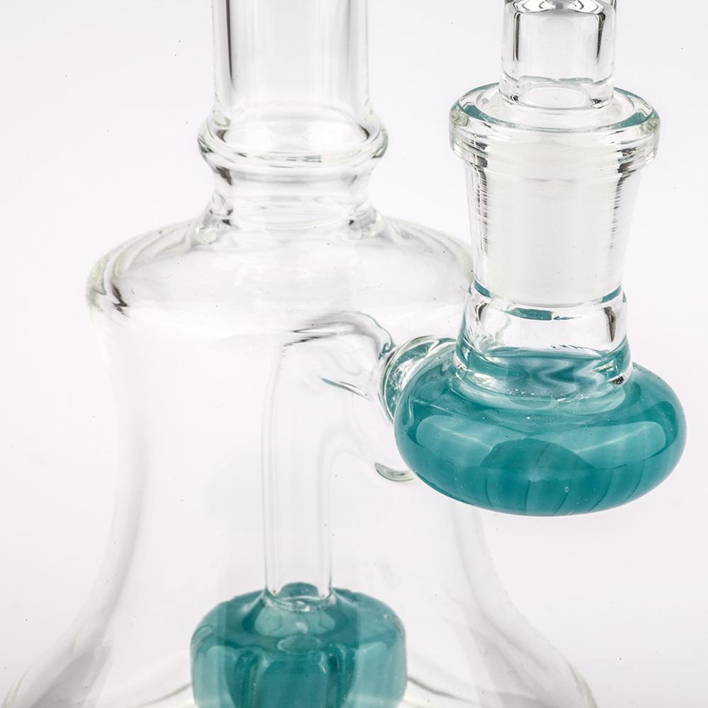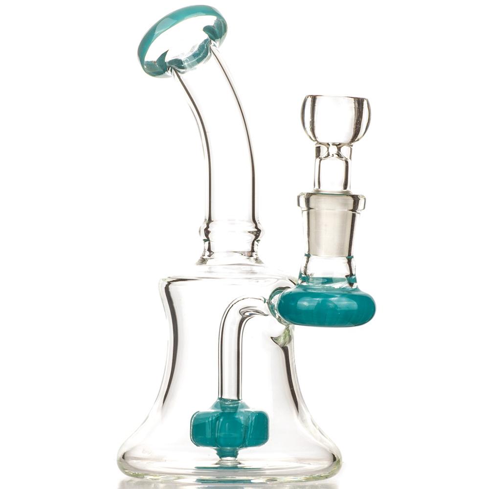 Mini dab rig or nano dab rigs can sit on the palm of your hand, but you can still use ordinary size quartz bangers or titanium nails on them(14mm male or female), but the downside of using a mini dab rig is that they won't be able to contain as much water for chilling the vapor like a normal-sized dab rig. But they are still super fun to use and super lightweight to carry!