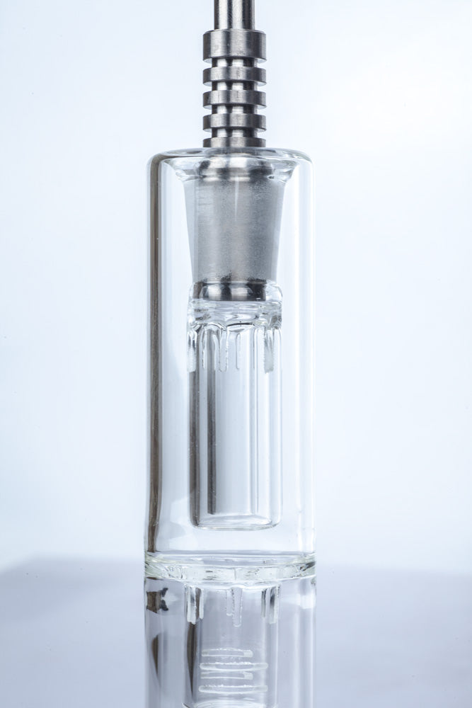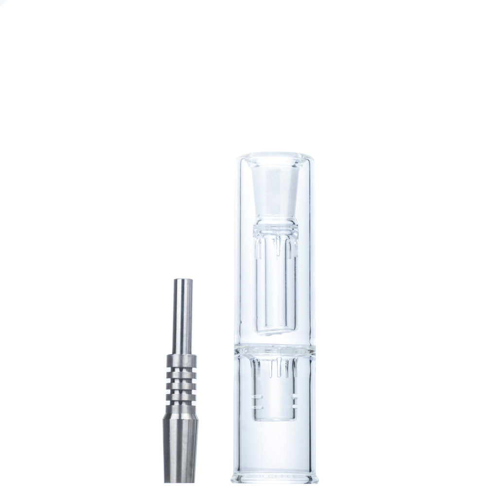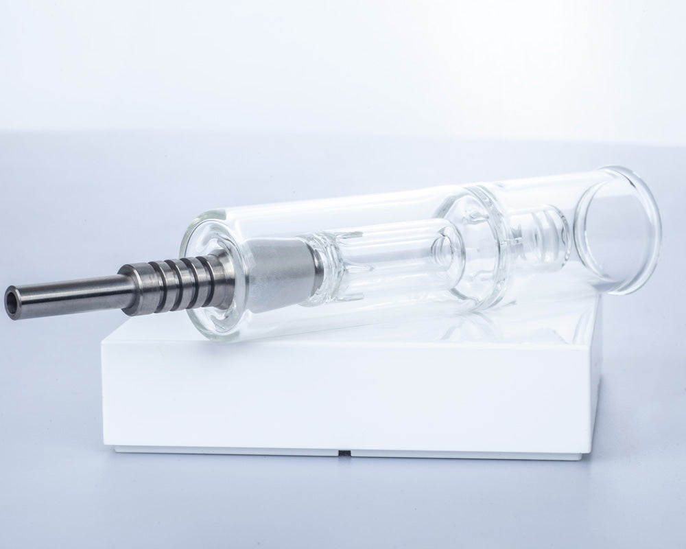 Nectar collector is one of the most popular dab tools. Comparing to dab rigs, the nectar collector is more portable and lowe price. It features a straw used as a mouthpiece and a titanium or quartz tip that is heated up and used to vaporize concentrate or oil.