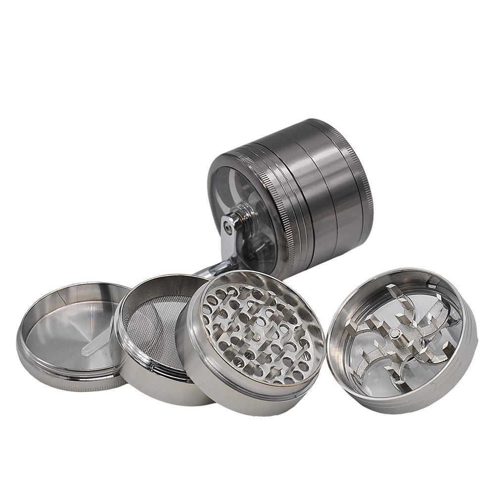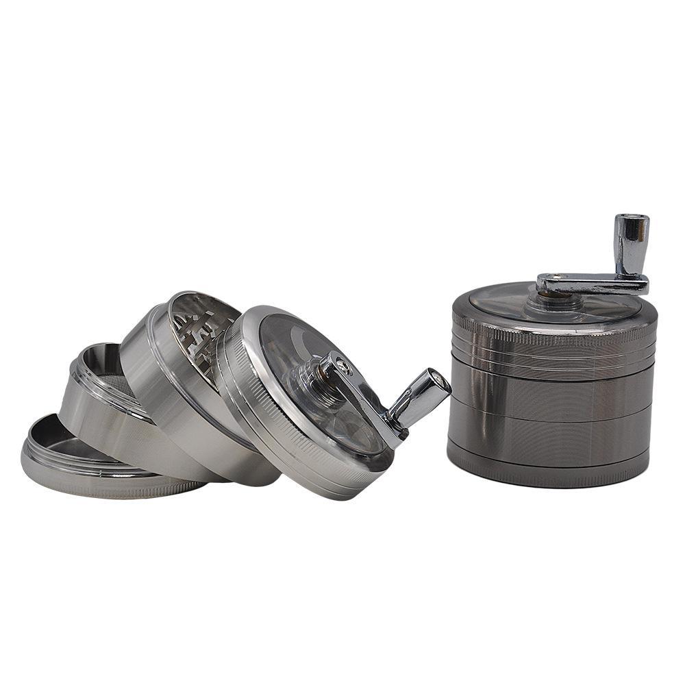 Crank Herb Grinder With Handle Zinc Alloy 4 Layer 63MM (2 Color)