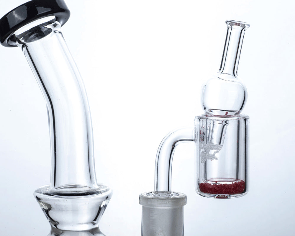 Quartz bangers or quartz nails are the heating sources for converting your concentrates into vapor. Quartz nails are quickly becoming the most widely used nail for it providing clean, efficient, flavorful vapors. Also, quartz heats up quicker than titanium. We carry a wide selection of quartz nails in all sizes to fit any dab rig.
