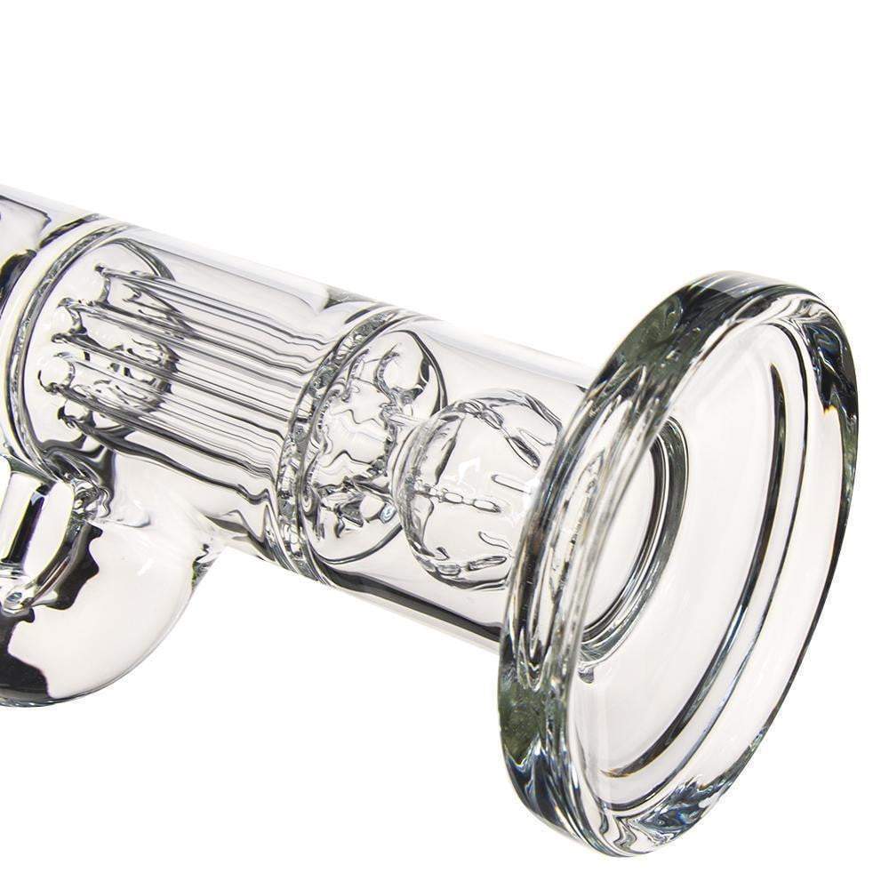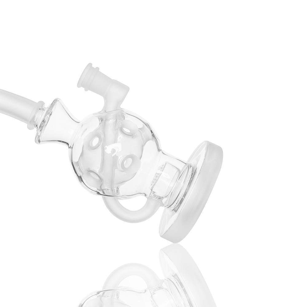 A recycler bong is referring to the type of water pipe(aka bong)that features a "recycling" percolator, sometimes even more than one. The most recognizable cosmetic feature of a recycler bong is the tubing that connects multiple bong chambers when you inhale, the water and the smoke will travel through the tubings, the smoke will be significantly chilled, easier for your throat and your lungs, the water will travel down to its original position hence the recycling process is complete. Recycler bongs are free Canada shipping.
