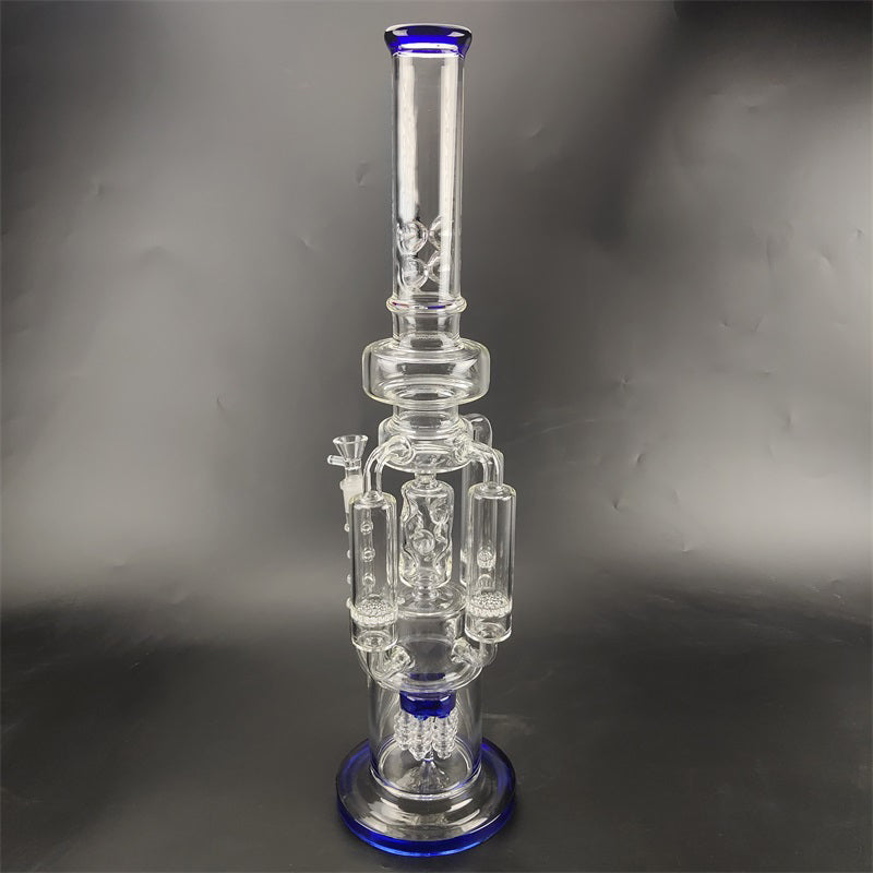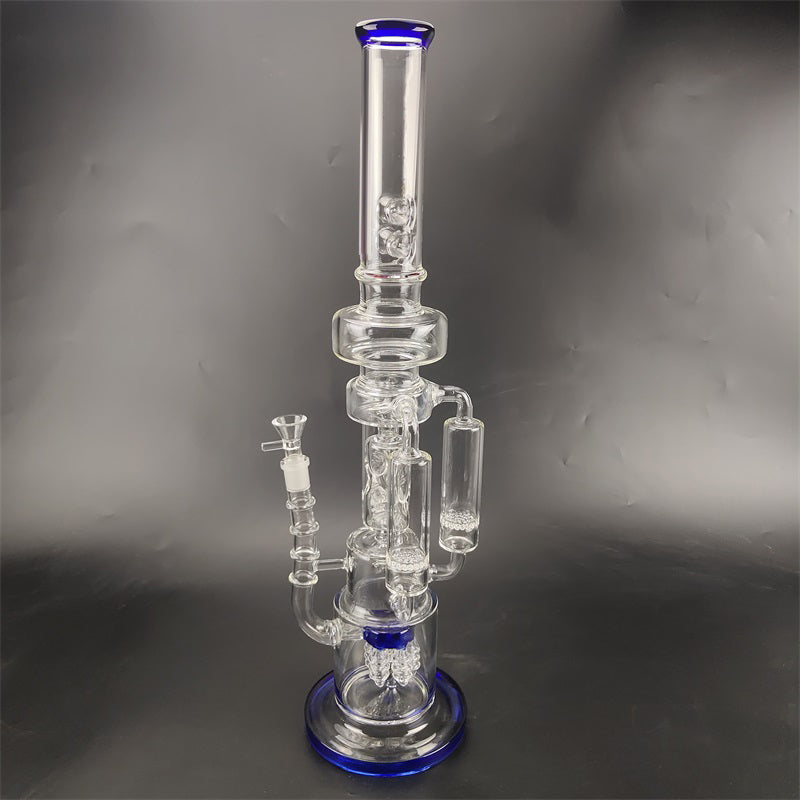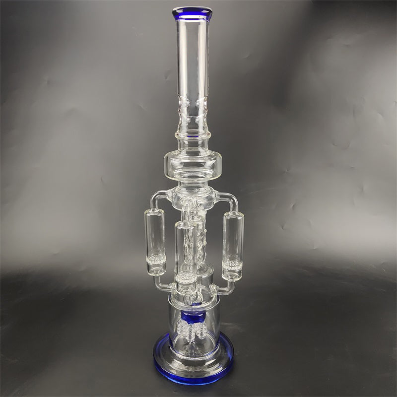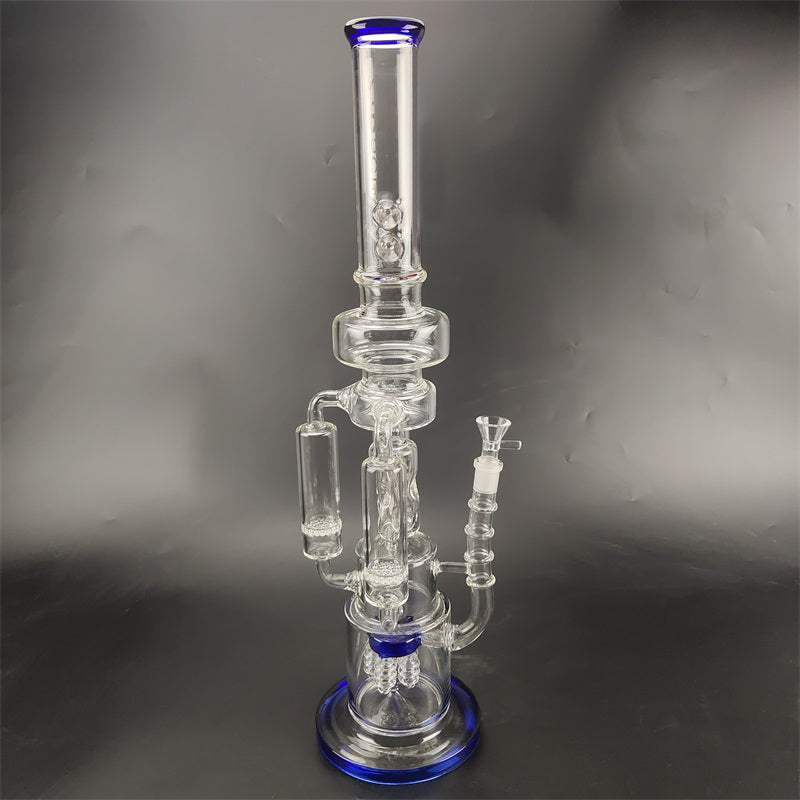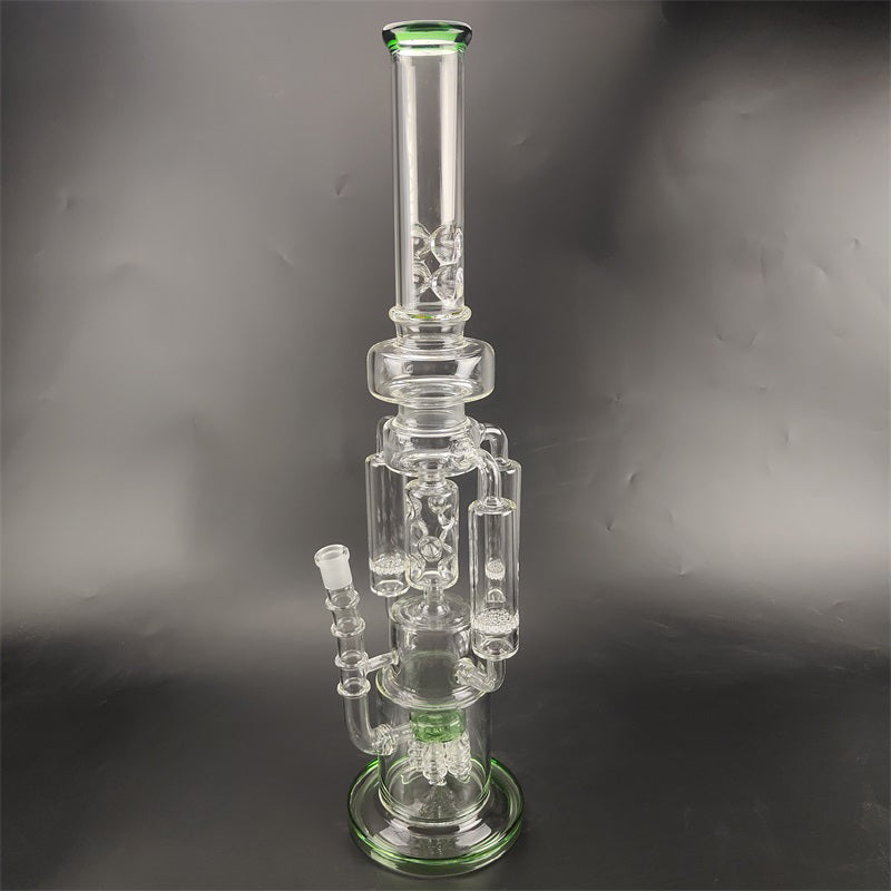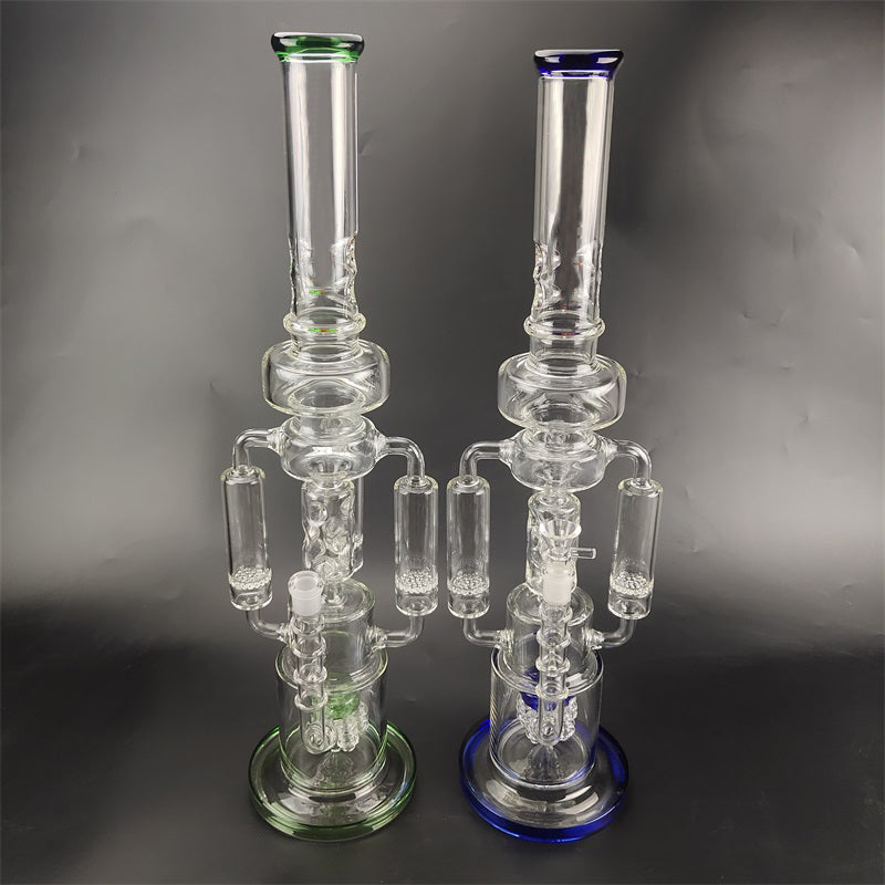 A recycler bong is referring to the type of water pipe(aka bong)that features a "recycling" percolator, sometimes even more than one. The most recognizable cosmetic feature of a recycler bong is the tubing that connects multiple bong chambers when you inhale, the water and the smoke will travel through the tubings, the smoke will be significantly chilled, easier for your throat and your lungs, the water will travel down to its original position hence the recycling process is complete. Recycler bongs are free Canada shipping.