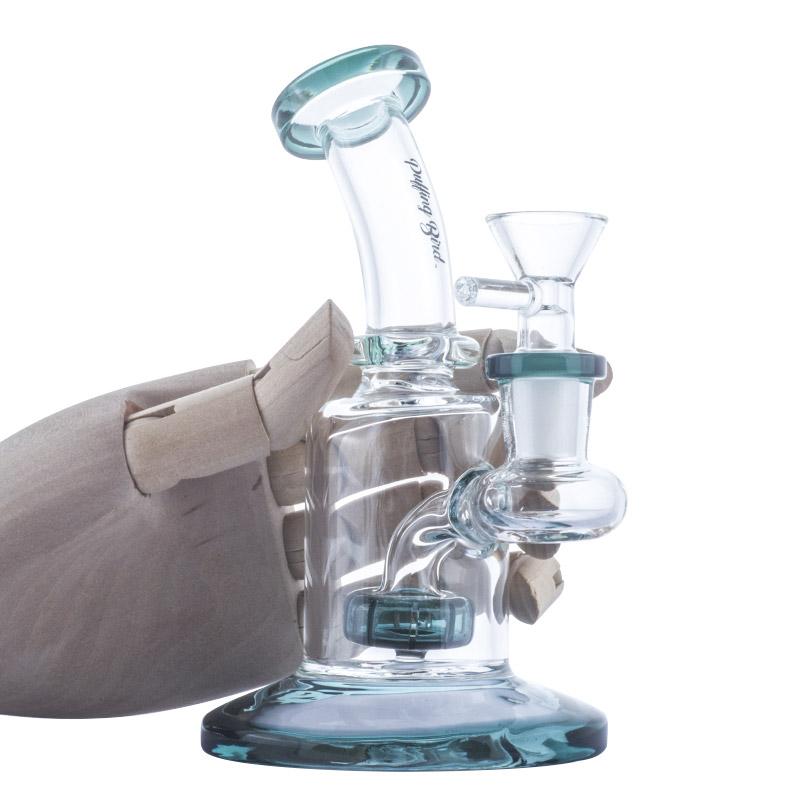 A recycler dab rig (or wax rig, oil rig) is referring to the type of dabbing rig that features one or multiple "recycling" percolator, it will feature multiple tubings that connects the top and the bottom water chamber, once you inhale, the vapor that generated from the quartz banger or titanium nail will travel up to the top chamber with the water, then the water will travel down through the tubings to the bottom chamber, finished the whole "recycling" motion.