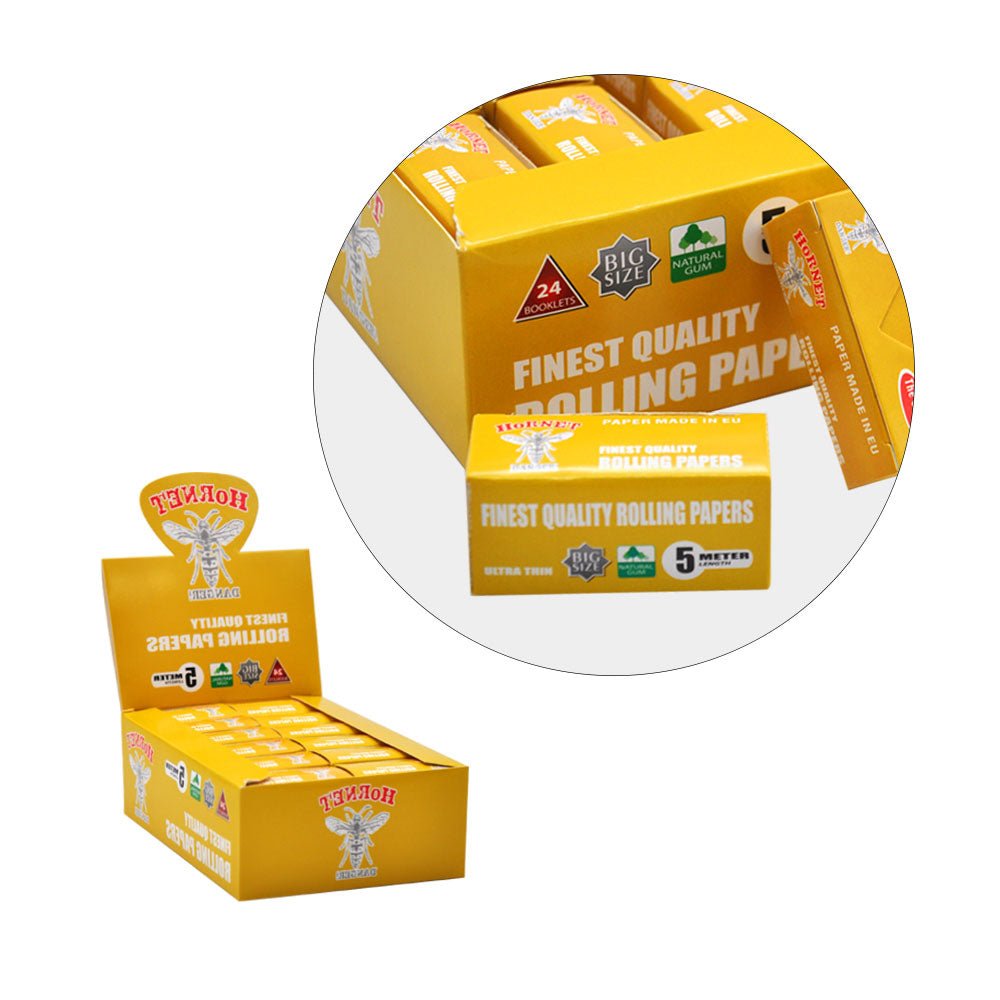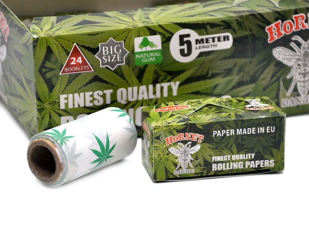 Hornet 5m Hempleaf Pattern Natural Rolling Paper BOX of 24 Rolls
